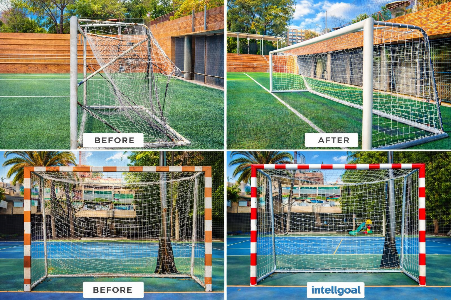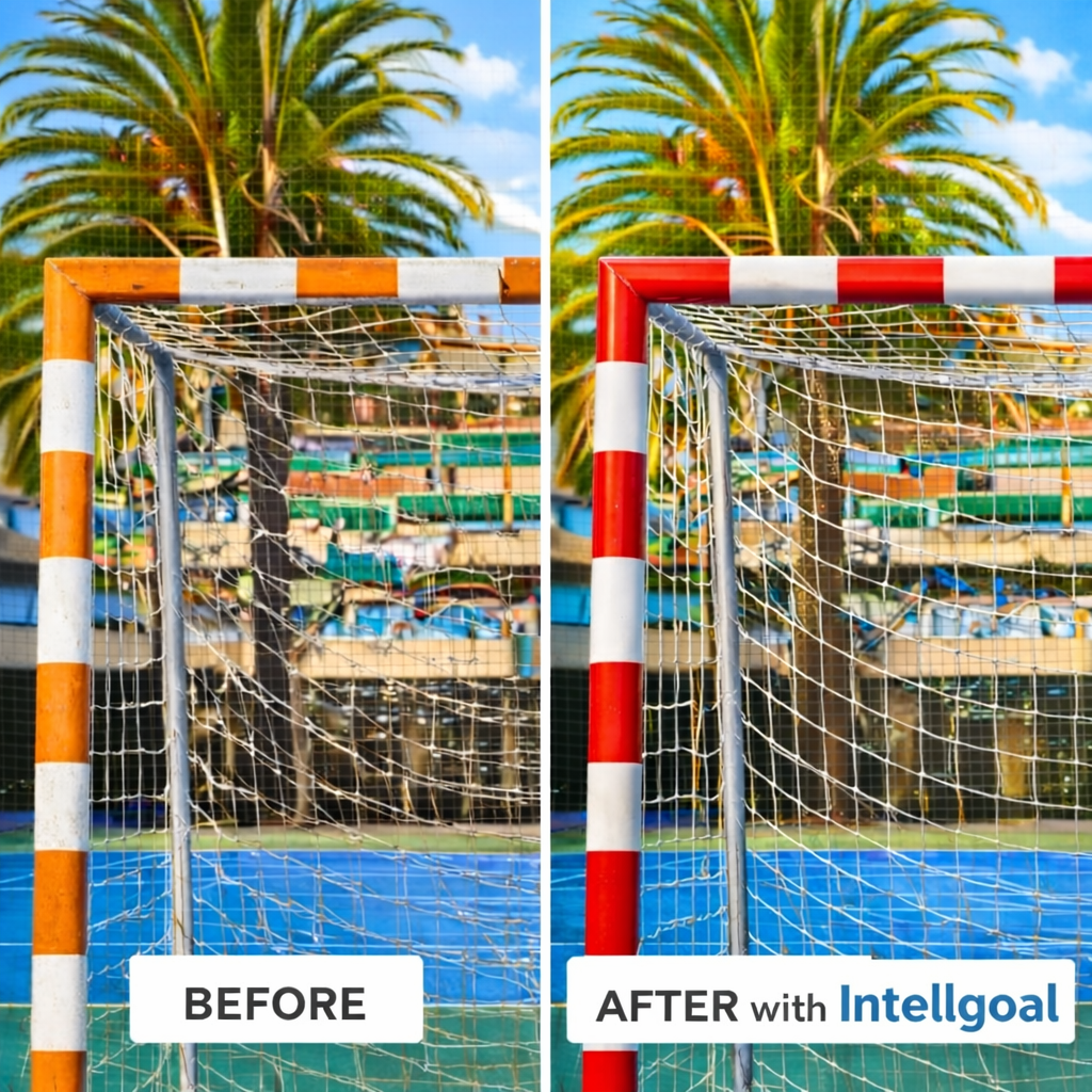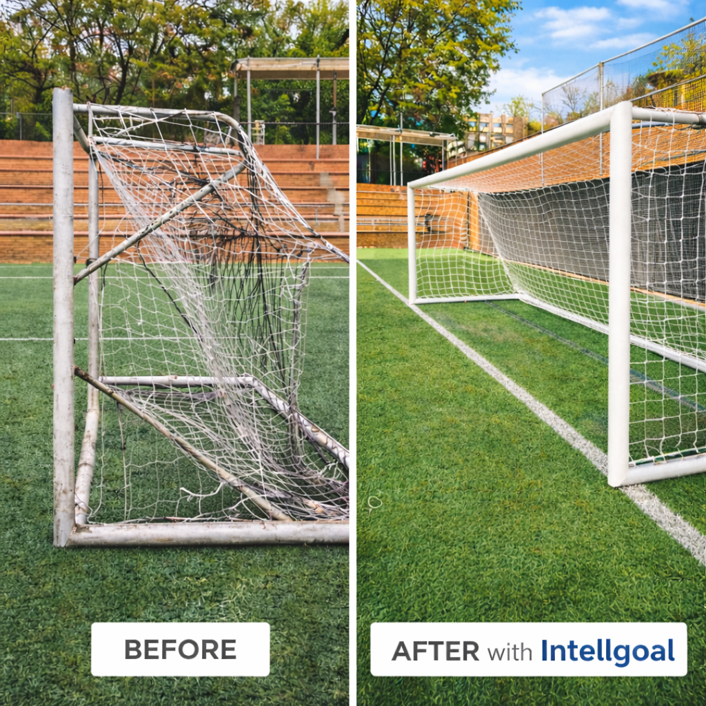 Sometimes the difference is not just a new goal, but everything the facility conveys when it is done properly. The "before" shows a conventional goal, with little presence, no distinctive value, and a more basic image within the sports environment.